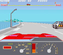 Konami GT, originally known as Konami RF2 - Red Fighter, is a 1985 racing video game developed and released by Konami, using their GX400 arcade architecture. The player drives a sports car which must reach various checkpoints without running out of fuel. A turbo mode (activated by the gear shift) increases the car's speed but uses more fuel and puts the player at a higher risk of hitting an obstacle. Fuel power-ups can be found on the road which the player must pick up to make it to the final checkpoint.