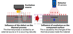 From Handwiki Active thermography is an advanced nondestructive testing procedure, which uses a thermography measurement of a tested material thermal response after its external excitation. This principle can be used also for non-contact infrared non-destructive testing (IRNDT) of materials. The IRNDT[1] method is based on an excitation of a tested material by an external source, which brings some energy to the material. Halogen lamps, flash-lamps, ultrasonic horn or other sources can be used as the excitation source for the IRNDT. The excitation causes a tested material thermal response, which is measured by an infrared camera. It is possible to obtain information about the tested material surface and sub-surface defects or material inhomogeneities by using a suitable combination of excitation source, excitation procedure, infrared camera and evaluation method.