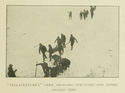 The dead and survivors alike were rescued about 54 hours later by another ship in the fleet, Bellaventure, under Captain Isaac Randell. Of the 132 men aboard Newfoundland, 78 died, and many more were seriously injured.[12] This disaster occurred in the same storm in which Southern Cross sank with all hands. The total loss from all three sealing ships totaled more than 250 lives, and the combined tragedy became known as the 1914 Newfoundland Sealing Disaster.