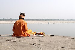 The color Saffron (Sanskrit: भगवा, lit. 'Bhagwā') is considered as sacred color in Hinduism. According to Hindu mythology, Saffron (or Kesariya) is the color of Sunset (Sandhya) and Fire (Agni) which symbolises sacrifice, light, and quest of salvation.[1] The color is worn by Hindu saints and ascetics as their devotion toward the religion.[2] Many Hindu kingdoms and dynasties had Saffron color in their flag denoting the Sanātana Dharma, including Maratha Empire. In modern times, the Bhagwa Dhwaj having the Saffron color indicates the Hindus and Hindutva.