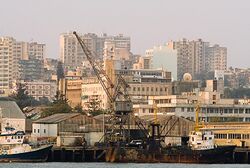 Maputo has a number of landmarks, including Independence Square, City Hall, Maputo Fortress, the central market, Tunduru Gardens, and Maputo Railway Station. Maputo is known as an aesthetically attractive, if dilapidated, city. With wide avenues lined by jacaranda and acacia trees, it has earned the nicknames City of Acacias[7] and the Pearl of the Indian Ocean.[8] The city is known for its distinct, eclectic architecture, with Portuguese colonial Neoclassical and Manueline styles alongside modern art deco, bauhaus, tropical modernism and Brutalist buildings.[5][9][10] The historic Baixa de Maputo district is the downtown area. Maputo has a vibrant cultural scene, with many restaurants, music and performance venues, and local film industry.[11] Maputo's economy is centred around its port, through which much of Mozambique's imports and exports are shipped. The chief exports include cotton, sugar, chromite, sisal, copra, and hardwood. In addition to trade, the city has robust manufacturing and service sectors. Several colleges and universities are located in Maputo, including Pedagogical University, São Tomás University, Catholic University of Mozambique, and Eduardo Mondlane University, the oldest in the country.