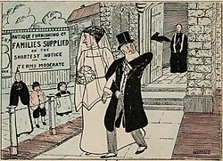 Shoe-throwing is a wedding superstition in several cultures.[6][7] In Victorian England, people would pelt "a bride and bridegroom with old shoes when they start on their honeymoon."[8] In Charles Dickens' novel David Copperfield (1850), the custom is recorded by the narrator following his marriage to Dora Spenlow:[9]