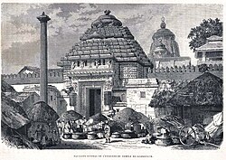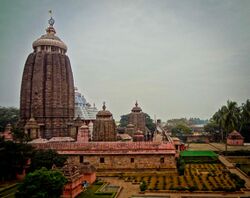 The Jagannath Temple is an important Hindu temple dedicated to Jagannath, a form of Vishnu–one of the trinity of supreme divinity in Hinduism. It is located in Puri in the state of Odisha, situated on the eastern coast of India . King Indradyumna of Avanti built the main temple of Jagannath at Puri.[2] The present temple was rebuilt from the tenth century onwards, on the site of the pre-existing temples in the compound, but not the main Jagannath temple, and begun by Anantavarman Chodaganga, the first king of the Eastern Ganga dynasty.[3] Many rumours are spread about the temple's origin, but there is no solid evidence of it.[4] The temple is one of the 108 Abhimana Kshethram of the Vaishnavite tradition.
