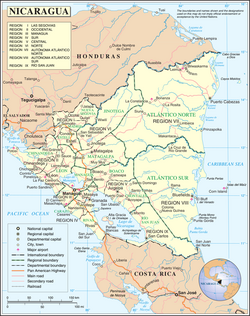 - ↑ 1.0 1.1 "Nicaragua". The World Factbook. United States Central Intelligence Agency. July 7, 2009. https://www.cia.gov/the-world-factbook/countries/nicaragua/.