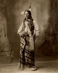 Joseph LaFlesche (ca 1820 - 1888), also known as E-sta-mah-za or Iron Eye, was the last recognized chief according to the old rituals of the Omaha tribe. He was the son of the French fur trader Joseph LaFlesche and his Ponca Indian wife. Iron Eye became the adopted son of Chief Big Elk of the Omaha; Big Elk personally selected him as his successor for chief. Iron Eye believed that his people's future lay in education and assimilation, including the adoption of the white man's agriculture and in accepting Christianity. This was met with some resistance among members of the tribe. He was a strong influence on his children, among them the Native American activists Susette LaFlesche Tibbles and Francis LaFlesche, and physician Susan La Flesche Picotte. Although these siblings disagreed about political and economic issues, all of them worked for the improvement of the quality of life for Native Americans and particularly for the Omaha tribe in Nebraska.