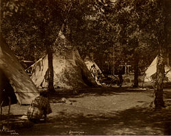As the tribe migrated westward from the Ohio River region, they adopted aspects of the lifestyle of the Plains Indians. The woodland custom of these earth lodges was replaced with easier to build and more practical tipis—tents covered in buffalo hides like those used by the Sioux. Tipis were also used during buffalo hunts away from the villages, and when relocating from one village area to another.