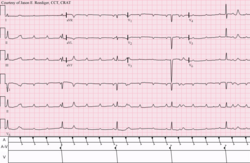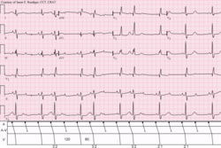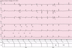 From Handwiki Heart block (HB)[1] is a disorder in the heart's rhythm due to a fault in the natural pacemaker.[2] This is caused by an obstruction – a block – in the electrical conduction system of the heart. Sometimes a disorder can be inherited. Despite the severe-sounding name, heart block may cause no symptoms at all in some cases, or occasional missed heartbeats in other cases (which can cause light-headedness, syncope (fainting), and palpitations), or may require the implantation of an artificial pacemaker, depending upon exactly where in the heart conduction is being impaired and how significantly it is affected.