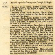 Responsibility for the state of the roads lay with the local parish since Tudor times. In 1656 the parish of Radwell, Hertfordshire petitioned Parliament for help to maintain their section of the Great North Road.[20] Parliament passed an act that gave the local justices powers to erect toll-gates on a section of the Great North Road, between Wadesmill, Hertfordshire; Caxton, Cambridgeshire; and Stilton, Huntingdonshire for a period of eleven years and the revenues so raised should be used for the maintenance of the Great North Road in their jurisdictions.[20][21] The toll-gate erected at Wadesmill became the first effective toll-gate in England.