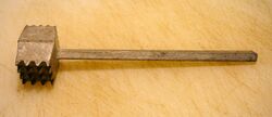 - Meat mallets tenderise or flatten meat. Made from wood or metal, they are typically two-sided, one flat or with slight bumps, and the other with more pronounced protrusions.[1] Their use has been reduced with the invention of cube steak machines and other electric tenderisers,[citation needed] but they can still be readily found at cookery stores and in professional use.