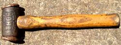 An iron mallet with copper faces. Solid head copper mallets are produced with a round or square head