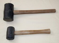 A mallet is a tool used for imparting force on another object, often made of rubber or sometimes wood, that is smaller than a maul or beetle, and usually has a relatively large head.
