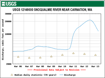 Once the rating curve is established, it can be used in conjunction with stage measurements to determine the volumetric streamflow discharge. This record then serves as an assessment of the volume of water that passes by the stream gauge and is useful for many tasks associated with hydrology.