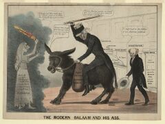 1837 cartoon playing on "Jackson" and "jackass", showing the Democratic Party as a donkey, which has remained its popular symbol into the 21st century