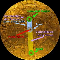 The lunar eclipse indicates the date of September 25, 52 BC: it is represented by an Eye of Horus locked into a circle.