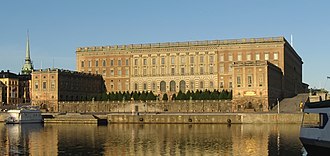 Stockholm is the seat of the Swedish government and most of its agencies,[23] including the highest courts in the judiciary,[24] and the official residences of the Swedish monarch and the Prime Minister. The government has its seat in the Rosenbad building, the Riksdag (Swedish parliament) is seated in the Parliament House,[25] and the Prime Minister's residence is adjacent at the Sager House.[26] Stockholm Palace is the official residence and principal workplace of the Swedish monarch, while Drottningholm Palace in neighbouring Ekerö serves as the Royal Family's private residence.[27]