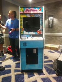 In 2016, a group of arcade restoration enthusiasts decided to build a restored Sky Skipper cabinet.[18] No complete cabinets were known to exist in private collections. Four boards owned by collectors, containing Popeye ROMs, were known to have been converted from Sky Skipper based on their serial numbers.[13][19] Using ROM images available online,[13] they converted a board to Sky Skipper.[5] To get information on the cabinet, they asked video game player Billy Mitchell to connect with Nintendo of America.[5] Nintendo said they still had a Sky Skipper cabinet[5] and granted them access to examine it.[9] With the scans they took, and sourcing one of the four known boards, they were able to create a recreation of the arcade game in Nintendo of America's archives.[19]