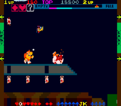 Lua error in Module:Lang/utilities at line 332: attempt to call field '_transl' (a nil value). is a 1981 arcade video game by Nintendo. The player pilots a biplane and must save animals and a royal family from gorillas holding them captured. This is done by dropping bombs on the gorillas to knock them out and unlock the cages, then diving down towards the cages to pick up the freed characters before the gorillas lock the cages again. An Atari 2600 port was released in 1983.
