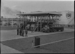In 1924 it opened Australia's first oil refinery that processed imported crude oil, near Laverton, Victoria, north of the Melbourne - Geelong railway, adjacent to Kororoit Creek Road.[6][7] The refinery received its first shipment of crude oil on 12 March 1924, with product coming "on-stream" on 17 May 1924. The refinery had an annual processing capacity of 100,000 tons of crude oil. The refinery was shut down on 6 August 1955, eclipsed by much larger refineries being built around the country.