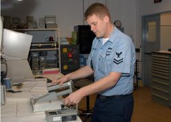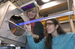 The term "plastic scintillator" typically refers to a scintillating material in which the primary fluorescent emitter, called a fluor, is suspended in the base, a solid polymer matrix. While this combination is typically accomplished through the dissolution of the fluor prior to bulk polymerization, the fluor is sometimes associated with the polymer directly, either covalently or through coordination, as is the case with many Li6 plastic scintillators. Polyethylene naphthalate has been found to exhibit scintillation by itself without any additives and is expected to replace existing plastic scintillators due to higher performance and lower price.[14] The advantages of plastic scintillators include fairly high light output and a relatively quick signal, with a decay time of 2–4 nanoseconds, but perhaps the biggest advantage of plastic scintillators is their ability to be shaped, through the use of molds or other means, into almost any desired form with what is often a high degree of durability.[15] Plastic scintillators are known to show light output saturation when the energy density is large (Birks' Law).