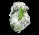 Titanite crystal that is totally gemmy and transparent, with a light olive-green color, perched on matrix of calcite and epidote