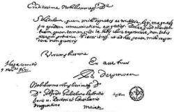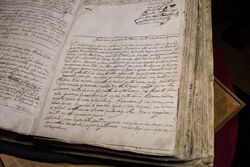 The language of Spinoza's censure is unusually harsh, however, and does not appear in any other censure known to have been issued by the Portuguese Jewish community in Amsterdam.[50] The exact reason for expelling Spinoza is not stated.[51] The censure refers only to the "abominable heresies [horrendas heregias] that he practised and taught", to his "monstrous deeds", and to the testimony of witnesses "in the presence of the said Espinoza". There is no record of such testimony, but there appear to have been several likely reasons for the issuance of the censure.[52]