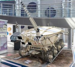 The Lunokhod rovers were lunar vehicles formed of a tub-like compartment with a large convex lid on eight independently-powered wheels. Length was 2.3 metres. They were equipped with a cone-shaped antenna, a highly directional helical antenna, television cameras, and special extendable devices to impact the lunar soil for density measurements and mechanical property tests, plus a scientific payload which varied with the mission.