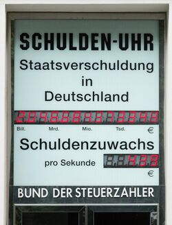 - Steuerzahler.de, Web site of the German Taxpayers Federation with a running debt clock at the page header
