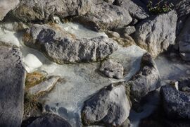 The "Mother Spring" feeds dozens of primitive, rock-lined hot mineral water soaking pools located along the banks of the San Juan River that flows through the center of the town of Pagosa Springs, Colorado. These hot springs are free of cost and open to the public 24 hours per day. The Mother Spring also feeds developed, private soaking pools at three locations in town.[15]