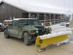 Military winter service vehicles are heavily armoured to allow for their use in combat zones, especially in Arctic and mountain warfare, and often based on combat bulldozers or Humvees.[20] Military winter service vehicles have been used by the United Nations, Kosovo Force, and the US Army in Central Europe during the Kosovo War,[21] while during the Cold War, the Royal Marines and Royal Corps of Signals deployed a number of tracked vehicles in Norway to patrol the NATO border with the Soviet Union.[22][23]