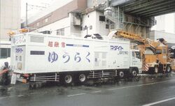 Many winter service vehicles can be fitted with snowplows, to clear roads which are blocked by deep snow. In most cases, the plows are mounted on hydraulically actuated arms, allowing them to be raised, lowered, and angled to better move snow. Most winter service vehicles include either permanently fixed plows or plow frames: 75% of the UK's Highways Agency vehicles include a plow frame to which a blade can be attached.[1] Winter service vehicles with both a plow frame and a gritting body are known as "all purpose vehicles", and while these are more efficient than using dedicated vehicles, the weight of the hopper often decreases the range of the vehicle. Therefore, most operators will keep at least a few dedicated plowing vehicles in store for heavy storms.[35]