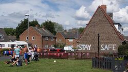 VE Day celebrations in 2020 took place under lockdown; here a socially distanced street party is taking place on Hallfield Estate, Wetherby.