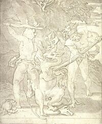 - Giovanni Jacopo Caraglio, Italian engraver, pupil of Marcantonio Raimondi; they specialized in making reproductions of Renaissance paintings, especially those of Raphael. Carcinos appears in the form of a sea crab.