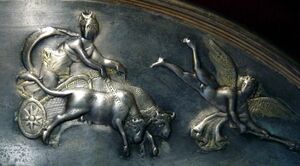 These books usually list a male and a female Titan with each planet: Cronus and Rhea with Saturn, Eurymedon and Themis with Jupiter, probably Crius and Dione with Mars, Hyperion and Theia with the Sun, Atlas and Phoebe with the Moon, Coeus and Metis with Mercury, and Oceanus and Tethys with Venus.[18][19] These planetary correspondences are linked to the ancient Greek myth of Eurynome as noted by Robert Graves.[20]