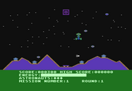 The player starts with three astronauts and a full tank of energy, but if he runs out of either the game ends.