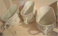 Because of its durability, inability to rust and impermeability, glazed porcelain has been in use for personal hygiene since at least the third quarter of the 17th century. During this period, porcelain chamber pots were commonly found in higher-class European households, and the term "bourdaloue" was used as the name for the pot.[73]