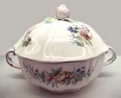Experiments at Rouen produced the earliest soft-paste in France, but the first important French soft-paste porcelain was made at the Saint-Cloud factory before 1702. Soft-paste factories were established with the Chantilly manufactory in 1730 and at Mennecy in 1750. The Vincennes porcelain factory was established in 1740, moving to larger premises at Sèvres[44] in 1756. Vincennes soft-paste was whiter and freer of imperfections than any of its French rivals, which put Vincennes/Sèvres porcelain in the leading position in France and throughout the whole of Europe in the second half of the 18th century.[45]