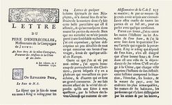 In 1712, many of the elaborate Chinese porcelain manufacturing secrets were revealed throughout Europe by the French Jesuit father Francois Xavier d'Entrecolles and soon published in the Lettres édifiantes et curieuses de Chine par des missionnaires jésuites.[35] The secrets, which d'Entrecolles read about and witnessed in China, were now known and began seeing use in Europe.[35]