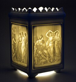 Early in the 16th century, Portuguese traders returned home with samples of kaolin, which they discovered in China to be essential in the production of porcelain wares. However, the Chinese techniques and composition used to manufacture porcelain were not yet fully understood.[22] Countless experiments to produce porcelain had unpredictable results and met with failure.[22] In the German state of Saxony, the search concluded in 1708 when Ehrenfried Walther von Tschirnhaus produced a hard, white, translucent type of porcelain specimen with a combination of ingredients, including kaolin and alabaster, mined from a Saxon mine in Colditz.[33][7] It was a closely guarded trade secret of the Saxon enterprise.[7][34]