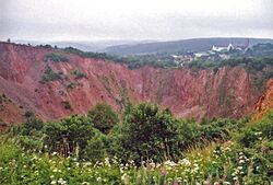 A Pinge (pronounced "pinger", plural: Pingen) or Binge ("binger") is the name given in German-speaking Europe to a wedge-, ditch- or funnel-shaped depression in the terrain caused by mining activity.[1] This depression or sink-hole is frequently caused by the collapse of old underground mine workings that are close to the Earth's surface.[2] Unlike natural landforms, a Pinge is a direct result of human activity.[3] The term has no direct equivalent in English, but may be translated as "mining sink-hole", "mine slump" or, in some cases, as "glory hole".