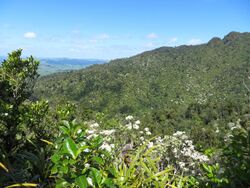 Captain Cook named Karioi as Woody Head.[26] The mountain is unique in being the most northerly on the west coast with a native rainforest sequence from sea level to montane flora. It is sustained by annual rainfall of over 1.5 m (4 ft 11 in).[27]