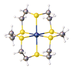 - ↑ Prett, V; Diaddario, L; Dockal, E; Corfield, P; Ceccarelli, C; Glick, M; Ochrymowycz, L. A.; Rorabacher, D. B. (1983). "Ring size effects on the structure of macrocyclic ligand complexes: copper(II) complexes with 12–16-membered cyclic tetrathia ethers". Inorganic Chemistry 22 (24): 3661–3670. doi:10.1021/ic00166a033.