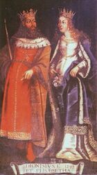 Ataces, in order to show his gratitude had the picture of his new wife placed in a vase, with a serpent on one side and a lion walking towards her on the other. Those were the insignias of Ataces (lion) and Hermeric (serpent). Cindazunda had her eyes lifted up the sky and her hands raised as if thanking the Eternal for having been the medium between the father and the husband and having united with bonds of peace and friendship the serpent and the lion, up until that moment, enemies. As the walls and towers of the city were being built, the workers carved on the stones this insignia so pleasant to the King, that until today, has been the coat of arms of Coimbra. Cindazunda, professing Catholicism, established the bonds of peace between the two kings and improved the fortunes of the inhabitants of Coimbra mitigating the ferocious spirit of Ataces against the catholics. The Visigoths would conquest the region later. During the Visigothic era (from the 5th to the early 8th century), the County of Coimbra was created by king Wittiza (c. 687 – probably 710) and it was a sub-county of his dominion, established as a fief for his son prince Ardabast (or Sisebuto), with its seat in Emínio (the Visigothic name for Coimbra), which persisted until the Muslim invasion from the south.[10]