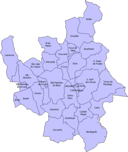 By 1854, with the expulsion of the religious orders and municipal reforms, the need to reorganize the municipality of Coimbra forced some changes in the existing structure of the administrative divisions. Consequently, documents were sent (on 20 January 1854) to the Ministries of Ecclesiastical Affairs (Portuguese: Ministério dos Negócios Eclesiásticos) and Justice (Portuguese: Ministério de Justiça) urging the identification by the Civil Governor and Archbishop of Coimbra (Manuel Bento Rodrigues) of the number of civil parishes to preserve, their limits, the political organs to be retained, a local census and other statistics to justify the demarcation of the territory.[16] A commission of five members, which included João Maria Baptista Callixto, António dos Santos Pereira Jardim, Roque Joaquim Fernandes Thomás, João Correia Ayres de Campos and António Egypcio Quaresma Lopes de Carvalho e Vasconcelos, was appointed to produce a plan to reduce, suppress, demarcate and establish civil parishes in the city of Coimbra and its suburbs.[16]