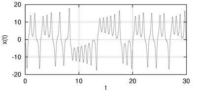 The idea of using time delayed coordinates to represent a system state is reminiscent of the theory of ordinary differential equations, where existence theorems say that a unique solution exists for each \([y(t), \dot{y}(t), \ddot{y}(t), \ldots]\ .\) For example, in many-body dynamics under Newtonian gravitation, current knowledge of the position and momentum of each body suffices to uniquely determine the future dynamics. The time derivatives can be approximated by delay-coordinate terms as \([y(t), \frac{y(t)-y(t-\tau)}{\tau}, \frac{y(t)-2y(t-\tau)+y(t-2\tau)}{\tau^2}, \ldots]\ .\)