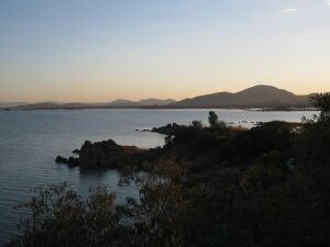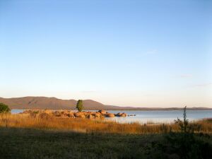 The Gaborone Dam is located south of Gaborone along the Gaborone-Lobatse road, and provides water for both Gaborone and Lobatse. The dam is the second biggest in Botswana, able to hold 141,400,000 cubic metres (184,900,000 cu yd).[59] It is also starting to be marketed as a recreational area. The northern end of the reservoir is planned to become an entertainment venue called The Waterfront. There is a yacht club, called Gaborone Yacht Club, also on the northern side of the lake. The southern end houses the Kalahari Fishing Club and a new public facility called City Scapes. City Scapes contains parks, playgrounds, and boating facilities.[60] The dam is popular with birdwatchers, windsurfers, and anglers.[19] However, there is no swimming due to the presence of crocodiles and parasitic bilharzias.[53]