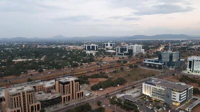 ![]() ![]() ![]() ![]() ![]() Top: Gaborone CBD; Middle: Botswana Parliament, Ministry of Education Building; Bottom: Gaborone National Museum, Botswana National Archives and Records Services | |