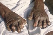 According to recent figures from the WHO, 208,619 new cases of leprosy were reported in 2018 from 127 countries.[58] It is most prevalent in India (69% of cases), Brazil, Indonesia, Nigeria, the Democratic Republic of the Congo, Madagascar , and East Africa from Mozambique to Ethiopia, with the highest relative incidence in India, Brazil, and Nepal.[59] There are one to two million individuals currently disabled or disfigured due to past or present leprosy.[60] It is caused by bacteria and transmitted through droplets from the mouth and nose of infected individuals.[61]