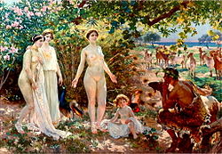 Due to the above sexual display function, the display of women's breasts is considered to be a crime in most jurisdictions. This is considered to be unfair by some women, who have formed the Topfree Equal Rights Association (TERA)[1] to further their cause. (A number of men support this movement as well, though they might be accused of having less than selfless motives for doing so.) Marriage is believed by proponents of this assertion to somehow neutralize this terrible moral risk. Ironically, people do not seem to have a problem looking at the mammary glands of other mammals. A natural laboratory for study, to confirm or falsify the assertion, would be any French or German beach. Observations in such places provide anecdotal evidence at best, but are nonetheless suggestive. (Pun not intended.) It is worth mentioning that the portrayal of nude women is not uncommon in paintings and sculptures.