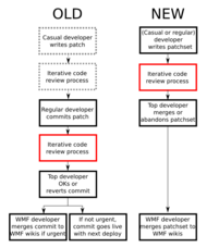 In the post-war era, the work of W. Edwards Deming and Joseph M. Juran led to a focus on quality, first in Japanese companies, and more globally from the 1980s: there were various movements ranging from total quality management to Six Sigma, and then more qualitative notions of business process re-engineering.[16] This led to more efforts to improve workflows, in knowledge economy sectors as well as in manufacturing. Variable demands on workflows were recognised when the theory of critical paths and moving bottlenecks was considered.[17]
