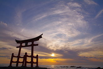 Shrines that are specifically placed to honor kami traditionally have a gate (torii 鳥居) which marks the beginning of the sacred land. The gate symbol has become associated with Japan as a nation.